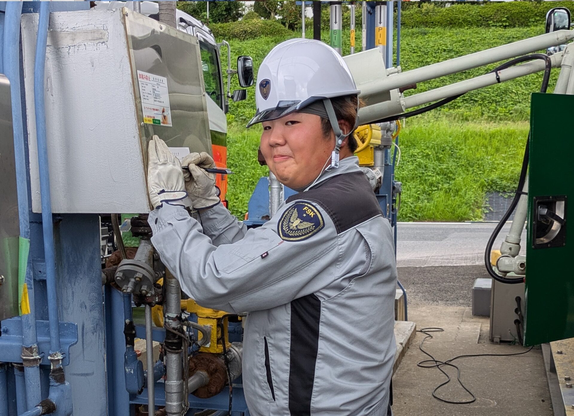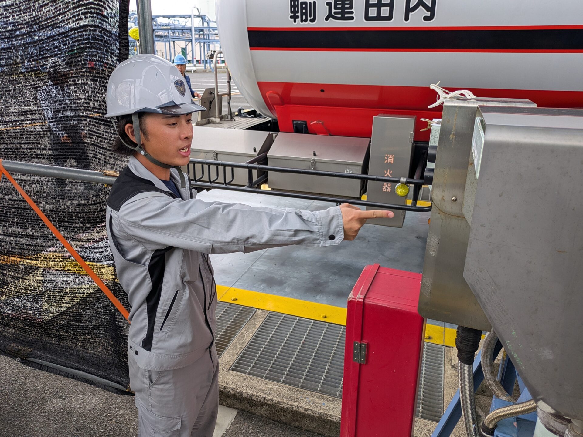 3名で交代しながら、タンクローリーへLPG出荷作業を行います。