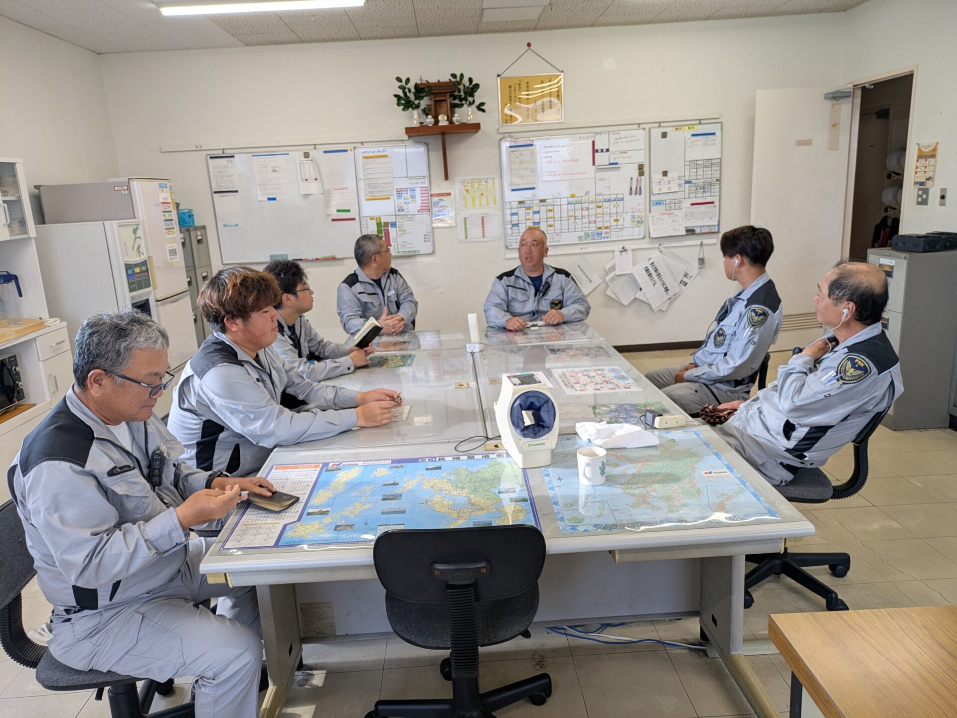 朝のミーティング後、内航船の出荷作業のため現場へ移動します。