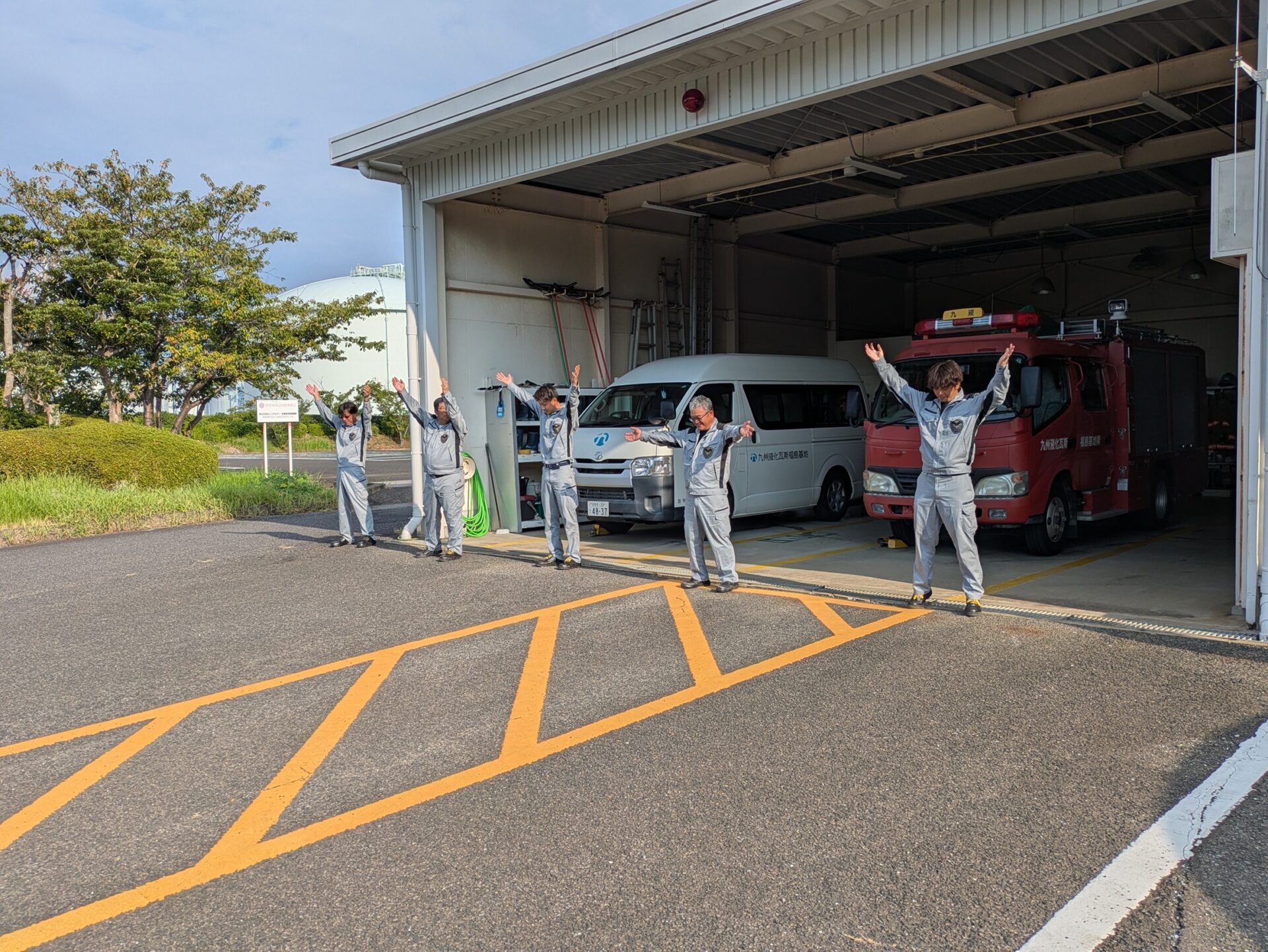 出勤後、それぞれに支給されている作業着に着替え、毎朝のラジオ体操を行います。