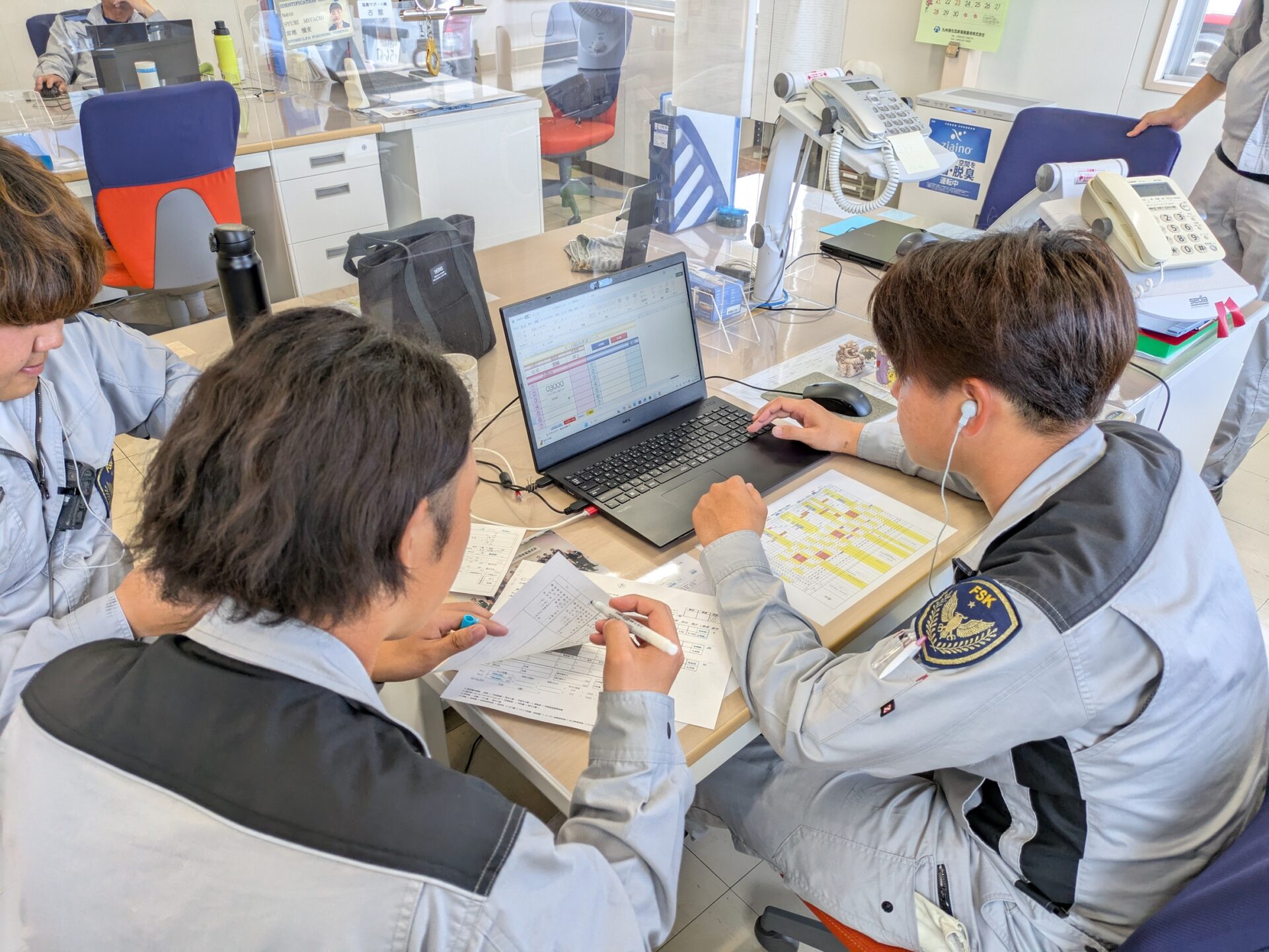 机まわりの清掃後、終礼ミーティングを行い、終業となります。
