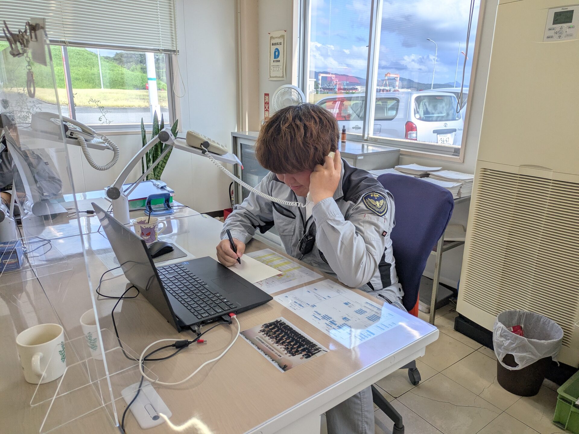 タンクローリーの出荷業務が終わるまで、守衛室(正門)業務を行います。